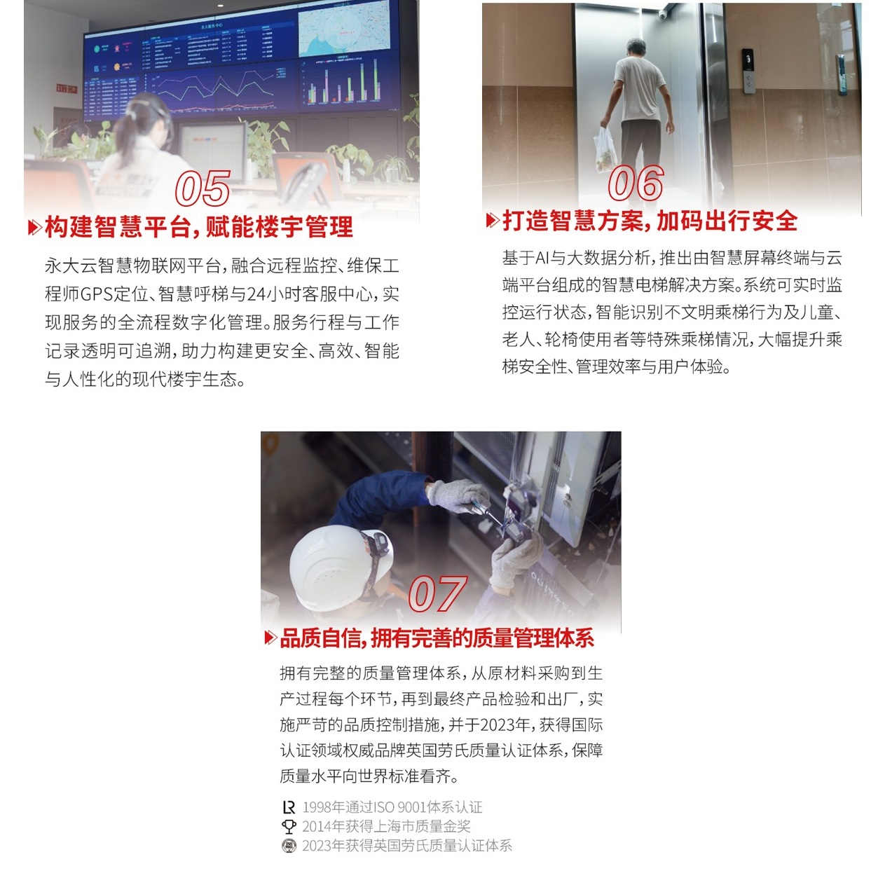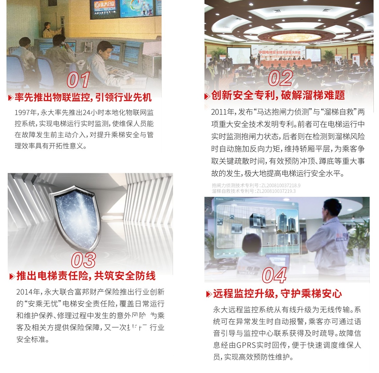 回溯歷程,安全技術(shù)的迭代升級是守護的核心力量——從基礎防護到智能監控,從人工巡檢到預測預警,持續投入與創(chuàng )新驅動(dòng)著(zhù)安全防線(xiàn)不斷筑牢。每一次技術(shù)突破,都源于對隱患零容忍的追求。未來(lái),永大將繼續以技術(shù)為矛、以規范為盾,為乘客打造安全、舒適、便捷的乘梯環(huán)境,承載萬(wàn)千家庭的安寧幸福,守護生活的高效便捷。